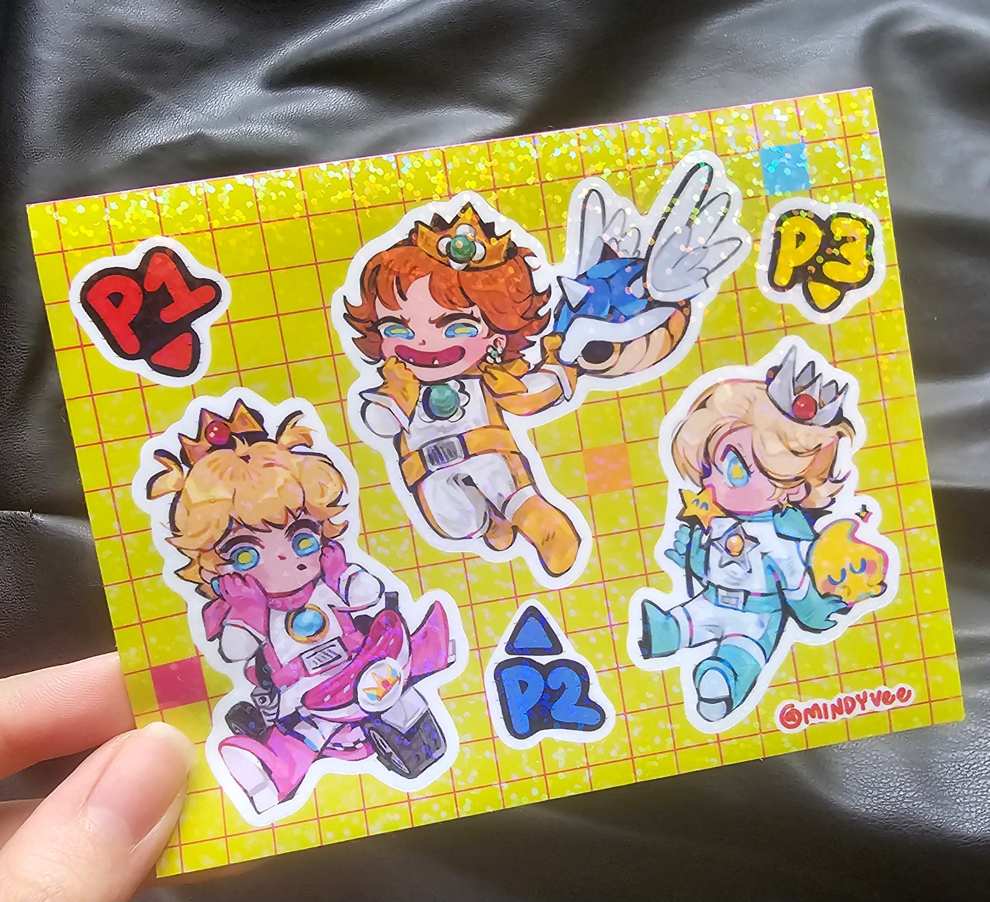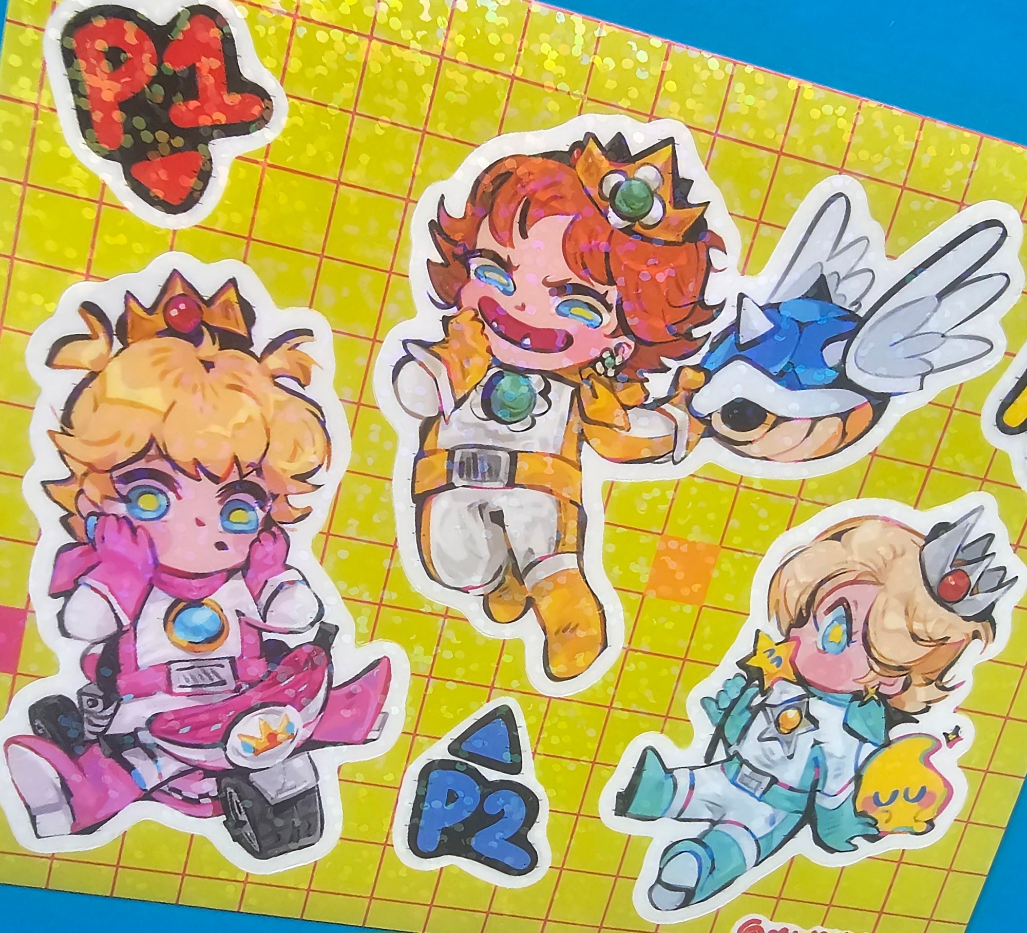 Royal Mario Kart babies-Princess Peach, Princess Daisy and Rosalina- as a glittery sticker sheet! š